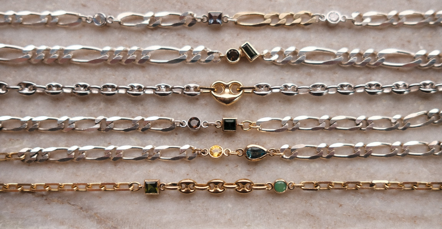 A curated collection of 60+ solid gold and sterling silver chain styles, paired with over 200 varieties of genuine gemstone charms to create the custom fine jewelry beyond your wildest dreams.