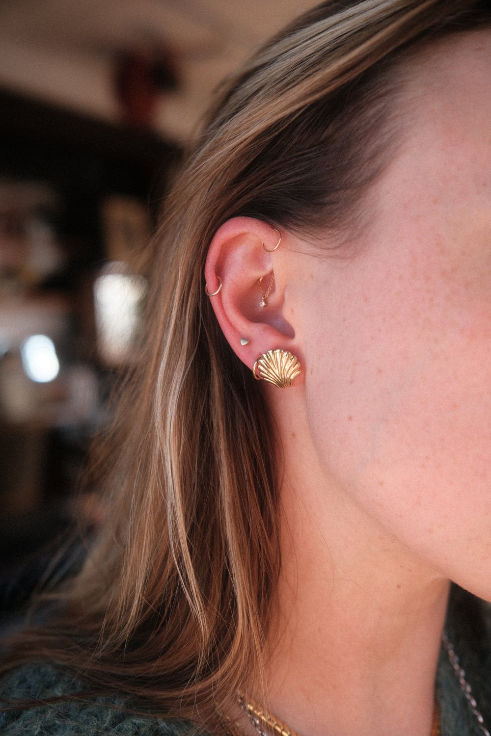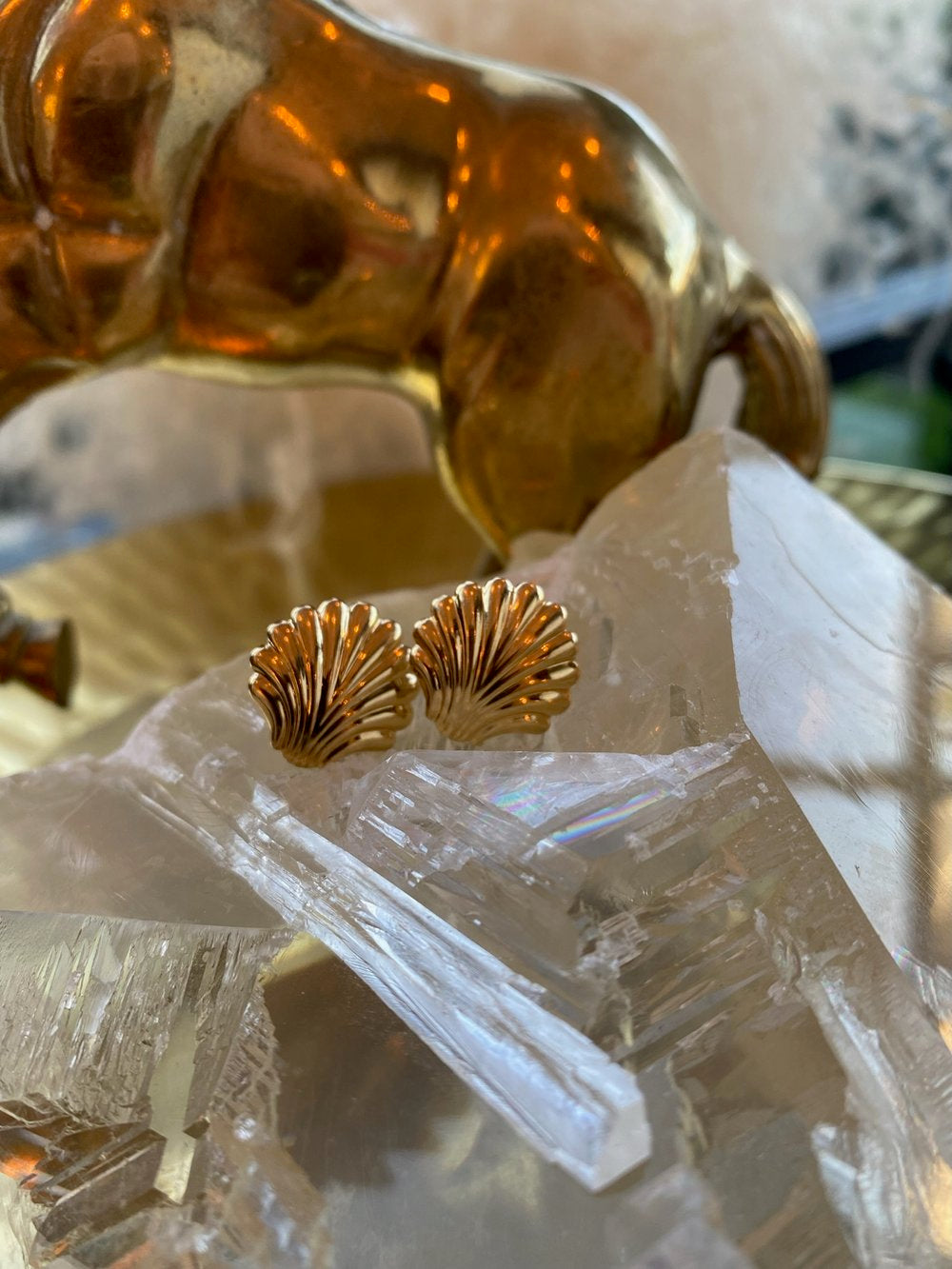 These one-of-a-kind vintage seashell studs are crafted in solid 14k yellow gold and bring bold, mermaid-core charm to any look.