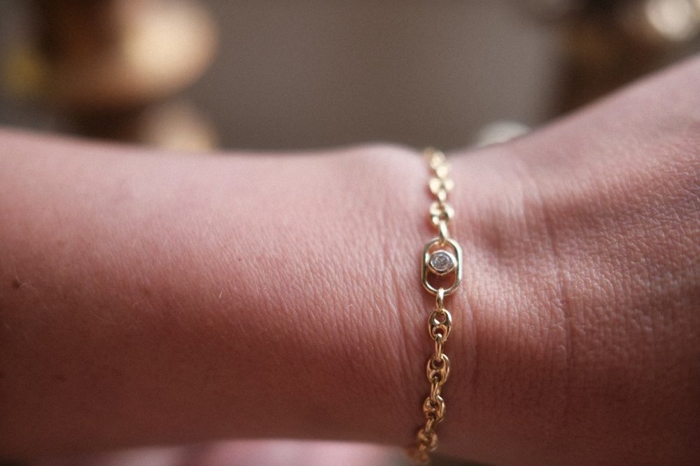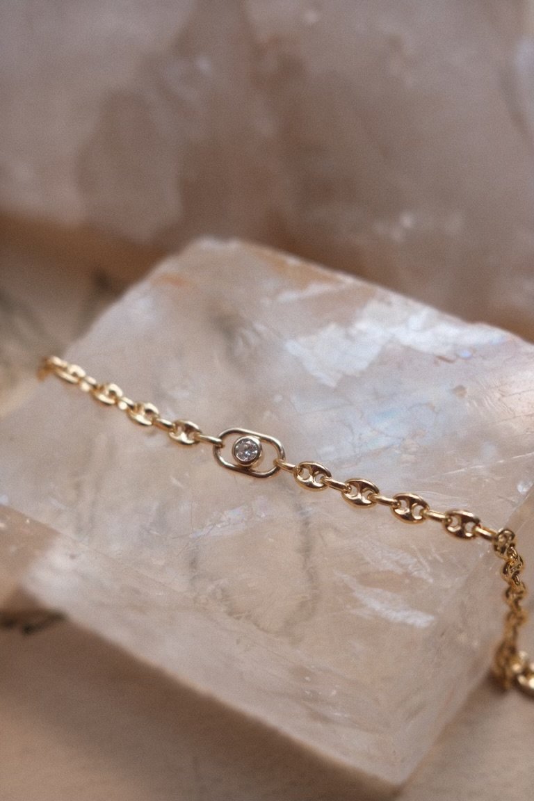 Our Floating Bezel Diamond in Baby Gucci Bracelet brings vintage charm into refined modernity. A bezel-set diamond dances along the richly textured links of solid 14k yellow gold, offering a soft shimmer with every movement. Designed to layer effortlessly or shine on its own, this piece transitions seamlessly from understated elegance to a more elevated stack—timeless, versatile, and made to be worn with intention.