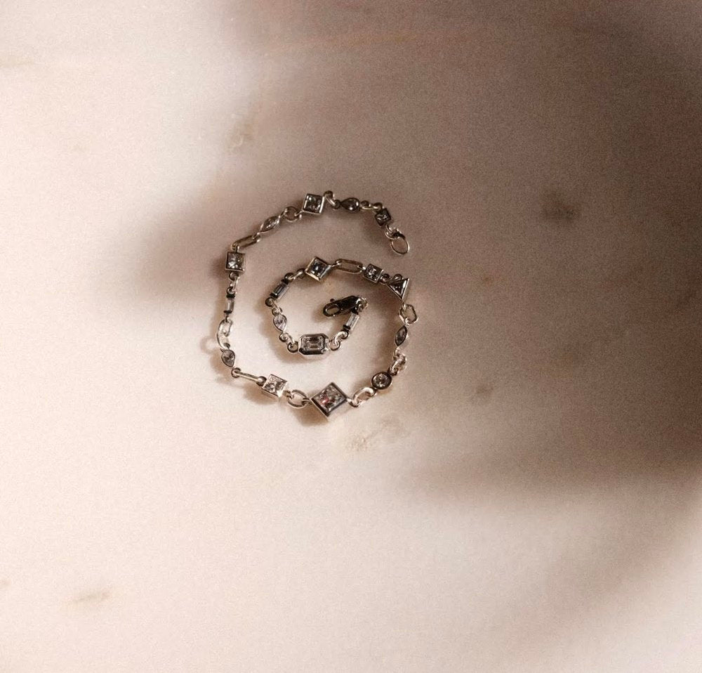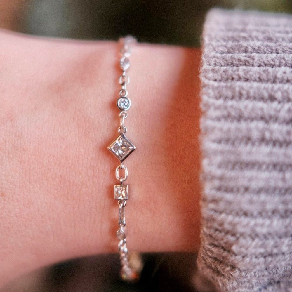This elegant bracelet features 18 mixed-shape natural diamonds, offering a unique and modern take on the classic tennis bracelet.