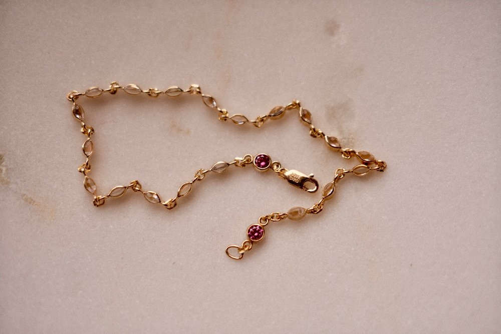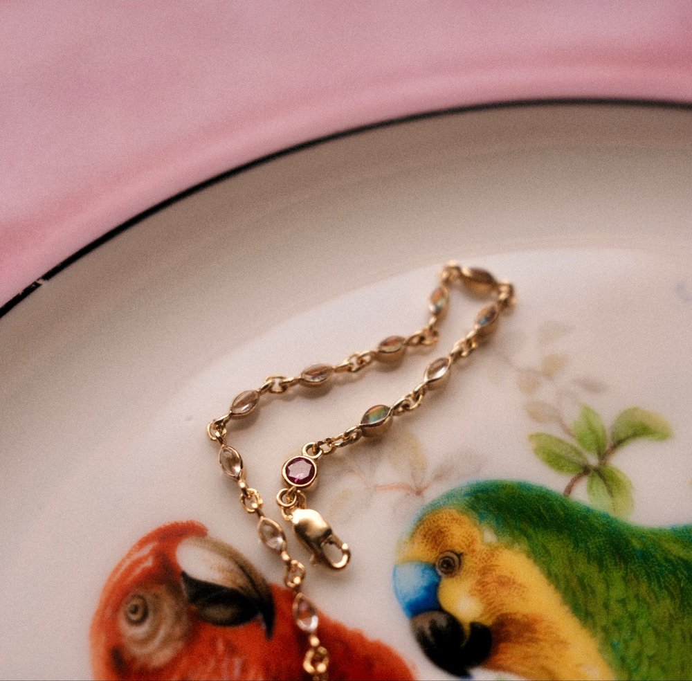 A study in elegance and intention, our one-of-a-kind Moonstone & Pink Diamond Tennis Bracelet is adorned with 19 cabochon rainbow moonstones—representing “1” in numerology, the number of new beginnings. Two pink diamonds, delicately placed, evoke harmony and connection. With a total of 21 stones, this bracelet embodies the energy of “3”—a symbol of joy, creativity, and effortless self-expression. A piece as meaningful as it is mesmerizing.