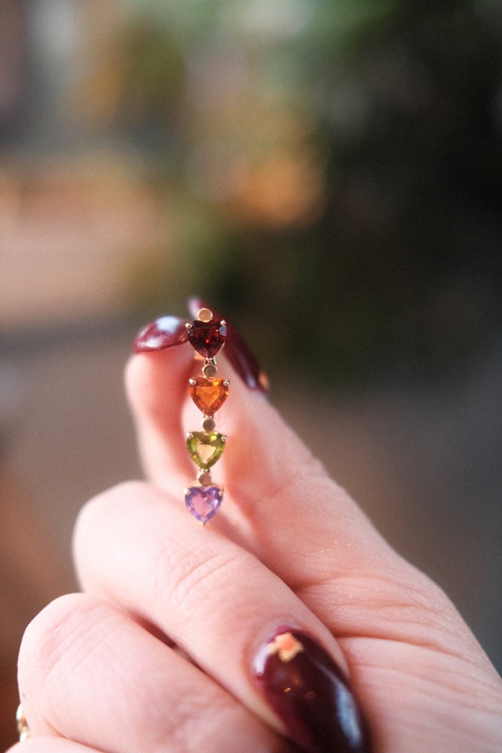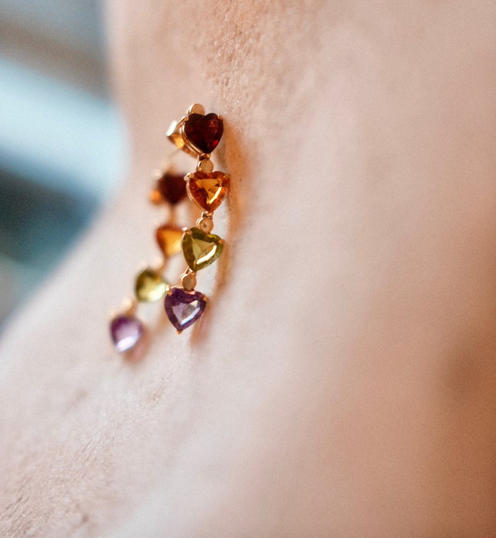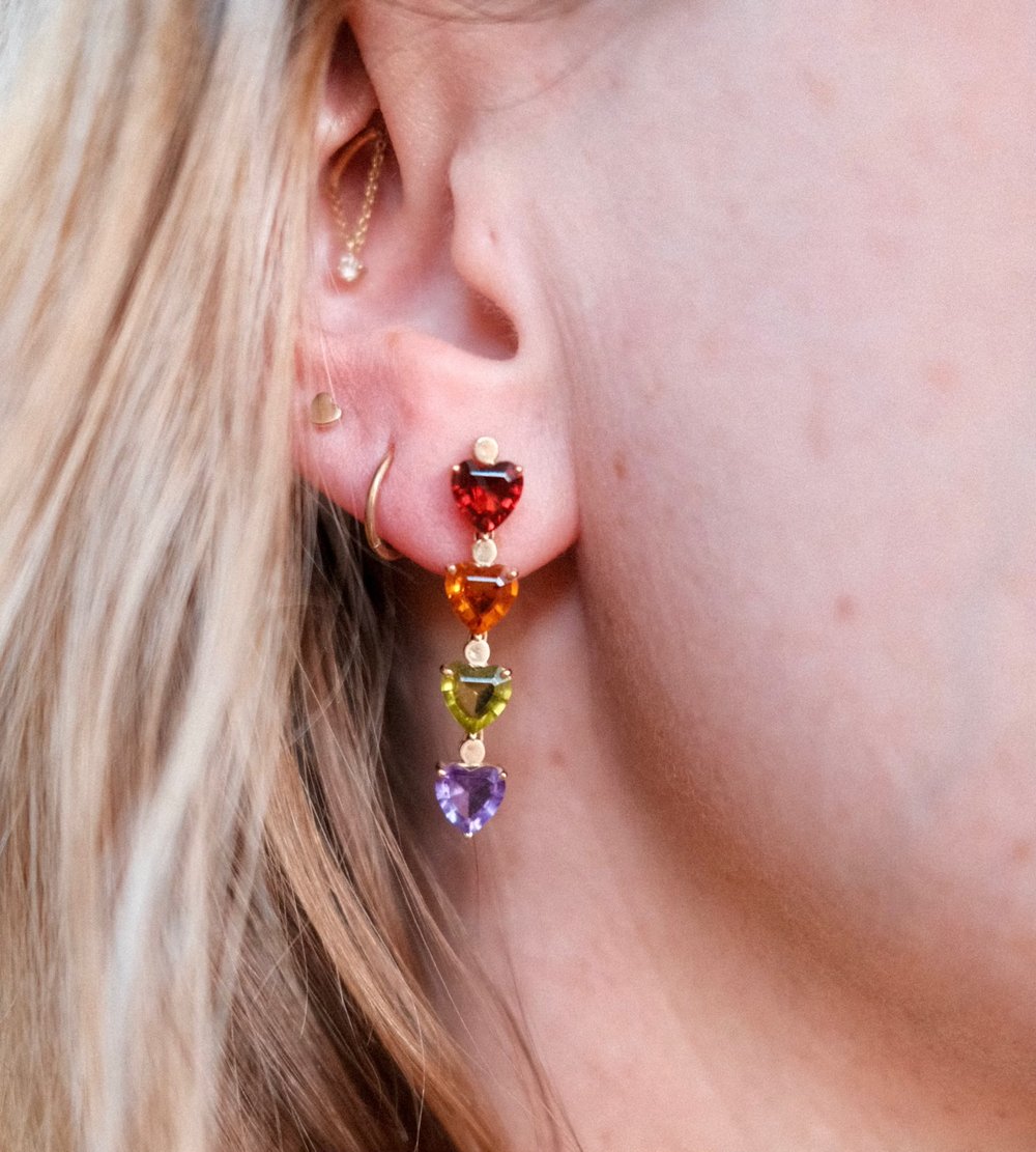 These stunning Gemstone Heart Dangle Earrings are the perfect blend of charm and elegance. Designed to catch the light - and the eye - they feature beautifully cut gemstones in a delicate heart silhouette, suspended for graceful movement and shimmer.
