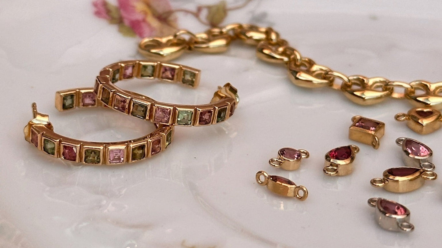 Pink Tourmaline is a love-enhancing, heart-opening stone that attracts joy, relaxation and happiness into one's life. It is effectively used to aid in healing deep emotional wounds. Green Tourmaline is a powerful grounding stone that supports the immune system, heart, and nervous system, encouraging a slower pace to embrace life's beauty. Connected to the heart chakra, it promotes healing through compassion, strength, and love.