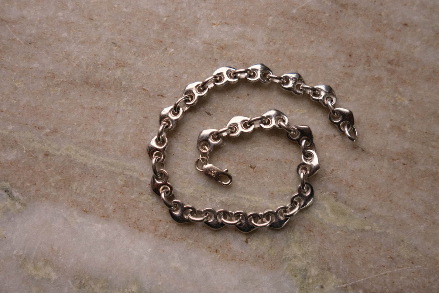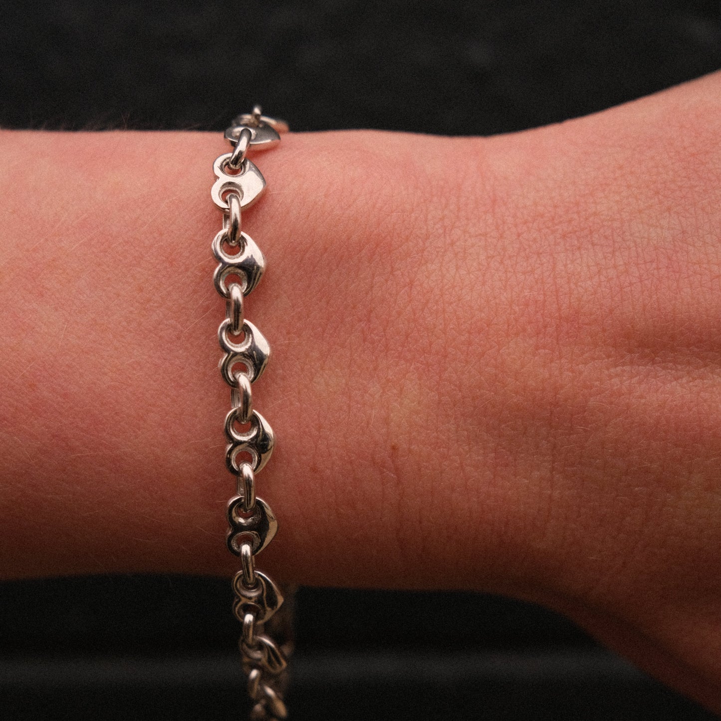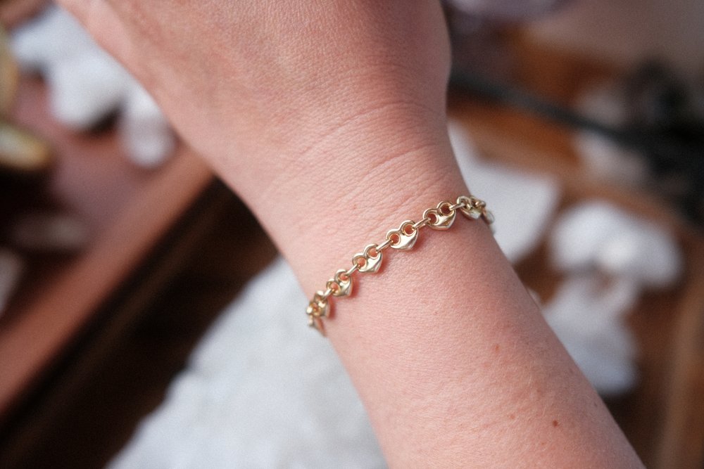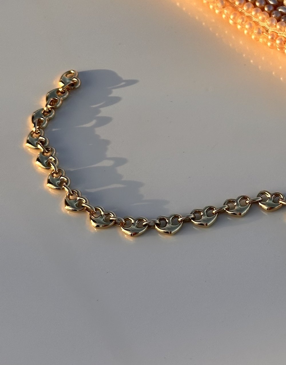 Crafted from 14k yellow gold or sterling silver, our Heart Bracelet features the highly coveted Heart Gucci-style chain—loved for its unique silhouette and timeless elegance. Bold yet refined, it’s a standout piece that adds warmth and shine to any stack.