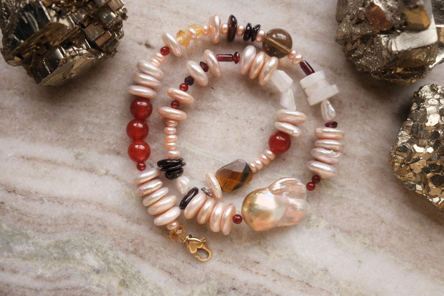 The Phoenix Pearl is created with a vibrant blend of natural stones and a single golden baroque pearl - the striking centerpiece that brings elegance and individuality. Radiating color, creativity, and character, it’s the perfect piece to elevate your everyday stack.